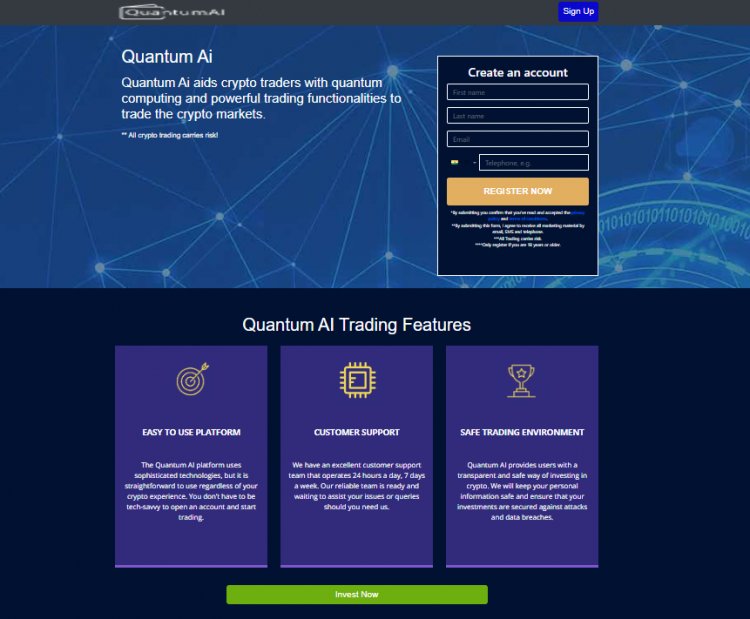साइन अप करने के लिए, होम स्क्रीन पर अपना पूरा नाम, ईमेल पता और फोन नंबर के साथ फॉर्म भरें। क्वांटम एआई के पास एक कठिन केवाईसी प्रक्रिया नहीं है, लेकिन जिन व्यापारियों के साथ वे साझेदारी करते हैं, उन्हें आईडी और पते के प्रमाण की आवश्यकता हो सकती है।